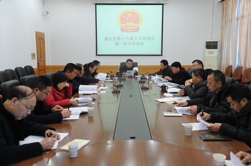 会议审定了县第十八届人大常委会第一次会议议题:听取和审议通江县人大常委会主任会议关于提请审议通江县第十八届人大常委会代表资格审查委员会组成人员的议案;人事任免。