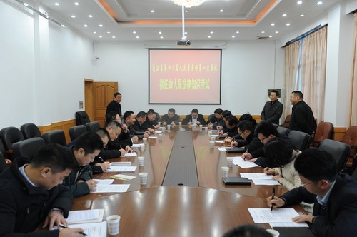 1月13日,县人大常委会对县第十八届人大常委会第一次会议拟任命人员进行了法律知识考试。县人大常委会主任杨森儒,副主任邹志善、莫小波到考场巡视。