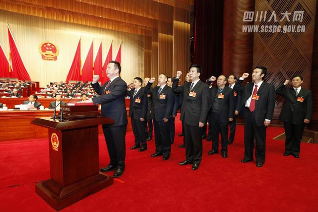 根据《四川省宪法宣誓制度实施办法》,新当选的省人大常委会副主任、委员在会上进行了宪法宣誓。