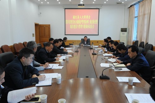 县政府办、县人大常委会法工委、城环资委、信息中心及县环保局、水务局、农业局、林业局、国土局、住建局、卫计局、公安局、交运局、市管局、执法局、文物局负责人参加会议。