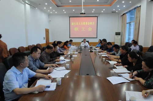 5月3日,县人大常委会主任杨森儒主持召开县人大常委会机关职工会议。县人大常委会副主任邹志善、莫小波、杨继松、田霞出席会议。