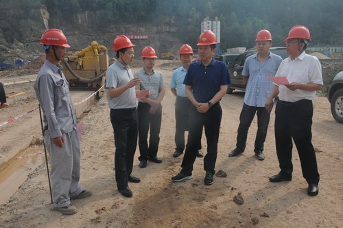 民胜镇方山村方田坝水库扩建工程现场,机器轰鸣,人来车往,工人们挥汗如雨,紧张施工,一派繁忙。向前一行来到施工现场,听取相关部门负责人工作汇报,了解工程施工建设情况。