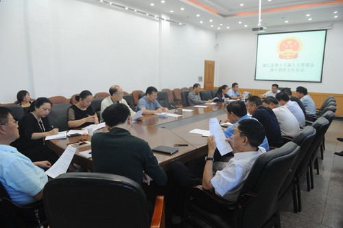 会议安排了9月份常委会议议题:听取和审议2017年1-8月国民经济和社会发展计划执行情况的报告;审查和批准2016年县本级财政决算;听取和审议2017年1—8月财政预算执行情况的报告;听取和审议2016年财政预算执行审计和其他财政收支审计情况的报告;听取县第十八届人大一、二会议代表建议、批评和意见办理情况的报告;听取和审议《通江县人民政府关于建设通江县人民医院精神病区的议案》;听取和审议《通江县人民政府关于建设通江县妇幼保健院(妇女儿童医院)的议案》;听取和审议《通江县人民政府关于审议〈通江县供排水公司与圣泉水务有限公司城市供水合作方案〉的议案》;听取和审议《通江县人民政府关于采用PPP模式实施通江县脱贫攻坚片区农村公路基础设施的议案》及其他事项。