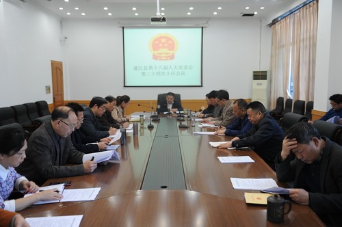 会议听取了县第十八届人大常委会第13次会议议题调研情况汇报:关于2017年地方政府债务限额的审查情况;关于《四川省饮用水水源保护条例》贯彻实施情况执法检查审议意见贯彻落实情况;关于“城市建设与管理”专题询问整改落实调查情况;关于《县人民政府关于通江县人民政府与巴中市秦巴融资担保股份有限公司产业扶贫“政融保”项目合作的议案》的审查情况;关于《县人民政府关于征收补偿华润燃气门站加气站的议案》的审查情况;人事任免及其他事项。