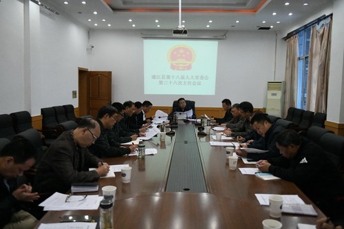 会议审定了县第十八届人大常委会第十五次会议有关事项的审议意见:关于通江县国民经济和社会发展计划“十三五”规划中期执行评估情况的审议意见;关于2017年度县级财政预算执行和其它财政收支审计工作的审议意见;关于2018年1—8月财政预算执行情况的审议意见;关于县人民政府办理第十八届人大三次会议代表议案及建议、批评和意见情况的审议意见。