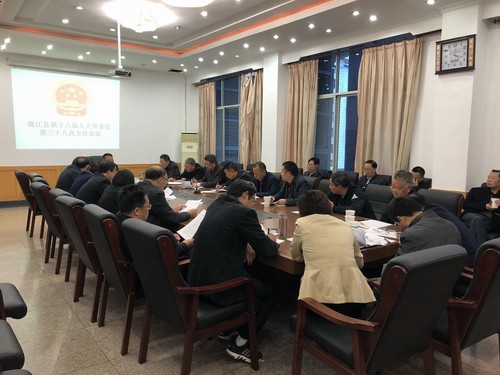 会议安排了县第十八届人大常委会第16次会议议题:听取和审议通江县人民政府关于全县环境状况和环境保护目标完成情况的报告;听取和审议通江县人民政府关于2018年县级财政预算调整情况的报告;听取和审议通江县人民政府关于2018年度统筹整合使用财政涉农资金预算调整的议案;听取通江县人民政府关于2017年财政预算执行和其他财政收支审计查出突出问题整改情况的报告;审查和批准通江县人民政府关于“十三五”规划中期评估有关指标调整方案;听取和审议通江县人民政府关于建议废止县人大常委会有关违规举债、违规担保的决议的议案;对部分县政府组成部门和工作部门进行工作测评;听取2018年上半年县人民政府关于全县公安工作、脱贫攻坚工作情况的审议意见贯彻落实情况的报告;其他事项。