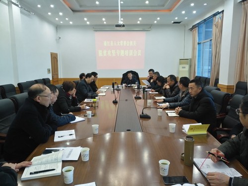 2月14日,县人大常委会机关召开脱贫攻坚专题培训会议。县人大常委会党组副书记主持会议。