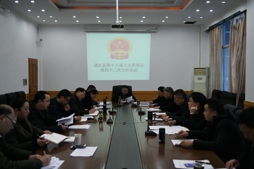会议听取了县第十八届人大四次会议各筹备组筹备工作情况汇报。审定了县第十八届人大常委会第十八次会议议题:传达学习巴中市第四届人民代表大会第三次会议精神;听取关于通江县第十八届人民代表大会第四次会议筹备工作情况报告;听取和审议《通江县人大常委会主任会议关于提请审议通江县第十八届人民代表大会第四次会议主席团和秘书长名单(草案)的议案》;听取和审议《通江县人大常委会主任会议关于提请审议通江县第十八届人民代表大会第四次会议议案审查委员会名单(草案)的议案》;听取和审议《通江县人大常委会主任会议关于提请审议通江县第十八届人民代表大会第四次会议列席人员名单(草案)的议案》;听取和审议《通江县人大常委会主任会议关于提请审议通江县第十八届人民代表大会第四次会议邀请在主席台就座人员名单(草案)的议案》;听取通江县第十八届人大常委会代表资格审查委员会关于县第十八届人民代表大会第四次会议代表实有人数的报告。听取和审议《通江县人大常委会主任会议关于提请接受张忠建、杨正跃辞去通江县第十八届人民代表大会常务委员会委员职务的议案》。其他事项。