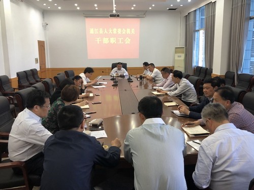 4月30日,县人大常委会主任杨森儒主持召开县人大常委会机关干部职工会,县人大常委会副主任邹志善出席会议。