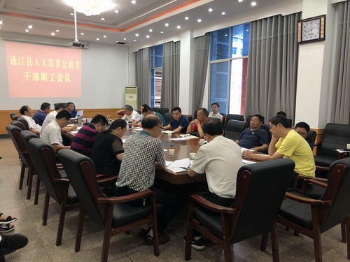 6月5日,县人大常委会主任杨森儒主持召开县人大常委会机关干部职工会,县人大常委会副主任邹志善、莫小波、杨继松出席会议。