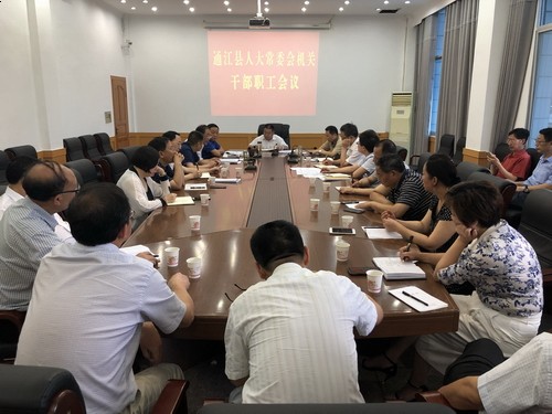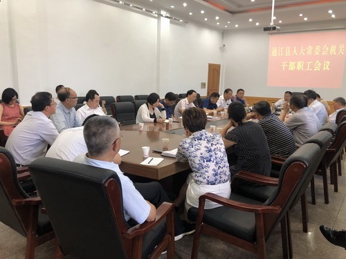 6月19日,县人大常委会主任杨森儒主持召开县人大常委会机关干部职工会,县人大常委会副主任邹志善、莫小波、杨继松出席会议。