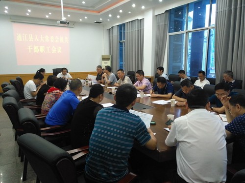 7月17日,县人大常委会主任杨森儒主持召开县人大常委会机关干部职工会。县人大常委会副主任邹志善、杨继松、田霞出席会议。