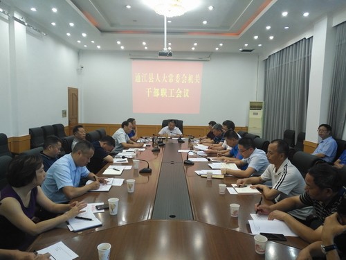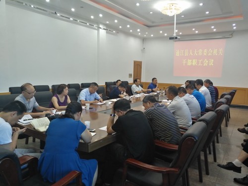 9月3日,县人大常委会主任杨森儒主持召开县人大常委会机关干部职工会。县人大常委会副主任邹志善、莫小波、杨继松出席会议。