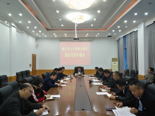 10月8日,县人大常委会主任杨森儒主持召开县人大常委会机关脱贫攻坚专题会议。县人大常委会副主任邹志善、莫小波出席会议。