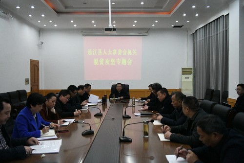 11月21日,县人大常委会主任杨森儒主持召开县人大常委会机关脱贫攻坚专题会。县人大常委会副主任邹志善、莫小波、杨继松出席会议。