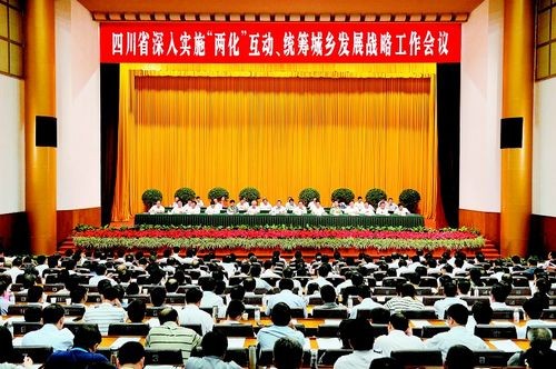四川省深入实施“两化”互动、统筹城乡发展战略工作会议,在成都、自贡、泸州进行了现场参观后,7月20日在成都举行大会。省委书记、省人大常委会主任刘奇葆出席会议并作重要讲话,强调要深入实施“两化”互动、统筹城乡总体战略,在科学发展轨道上不断开创改革发展的新局面。