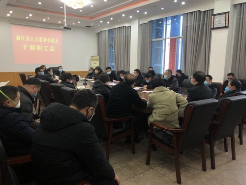 2月1日,县人大常委会主任杨森儒主持召开县人大常委会机关干部职工会议。县人大常委会副主任莫小波、杨继松出席会议。
