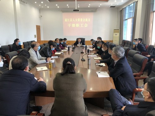 3月10日,县人大常委会主任杨森儒主持召开县人大常委会机关干部职工会。县人大常委会副主任邹志善、莫小波、杨继松出席会议。