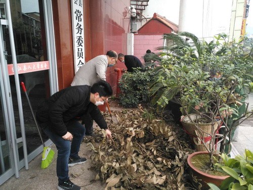 3月14日,县人大常委会主任杨森儒率县人大常委会机关全体干部职工开展爱国卫生运动“周末卫生大扫除”活动。 县人大常委会副主任邹志善、莫小波、杨继松参加活动。