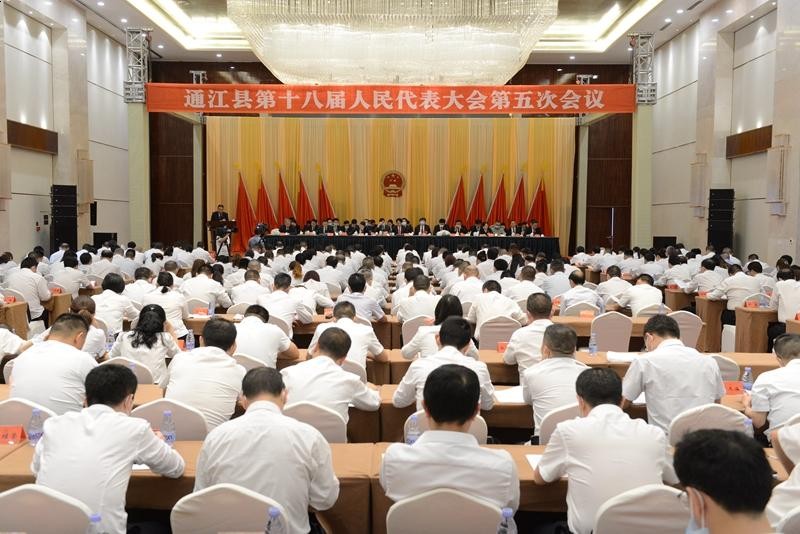 5月19日下午,通江县第十八届人民代表大会第五次会议举行第二次全体会议,听取县人大常委会工作报告。