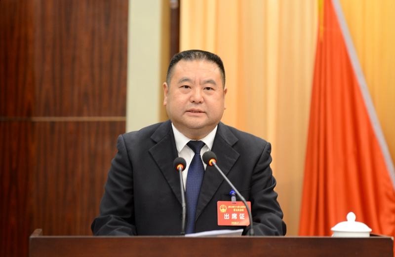 受县十八届人大常委会委托,县人大常委会主任杨森儒作县人大常委会工作报告。