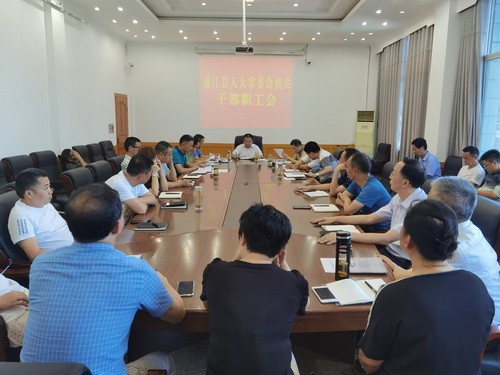 8月6日,县人大常委会主任杨森儒主持召开县人大常委会机关干部职工会。县人大常委会副主任邹志善、莫小波、杨继松、刘明琼出席会议。