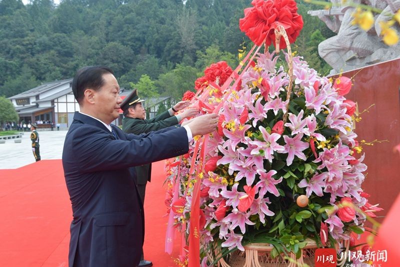 巴中市委书记罗增斌主持仪式。省委、省人大常委会、省政府、省政协、省军区、省检察院、武警四川省总队有关领导,省直有关部门负责同志,各民主党派省委、省工商联负责人和无党派人士代表,巴中市及通江县机关干部和各界群众代表,烈士遗属和老战士代表,中小学师生代表和驻巴中部队官兵代表等参加敬献花篮仪式。(转自《四川日报》2020年10月1日01版)