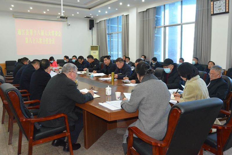 会议审定了县第十八届人大常委会第43次会议议题并听取情况汇报:听取和审议《通江县人大常委会关于召开通江县第十八届人民代表大会第六次会议的决定(草案)》的议案;听取和审议《通江县人民代表大会常务委员会工作报告(草案)》的议案;听取和审议《通江县人大常委会主任会议关于提请补选2名巴中市第四届人民代表大会代表的议案》;人事任免和其他事项。