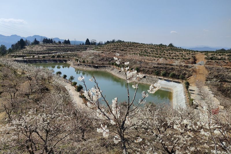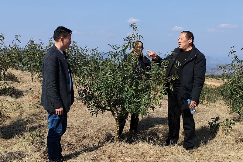在李成泉和乡亲们的精心管护下,380余亩青花椒苗绿满一个个小山岗,长势喜人。“考虑到青花椒生长周期无收益,我召集村民代表商议,决定种植一批果树,长短结合。”李成泉又流转土地600余亩,种植翠冠梨400亩、乌克兰樱桃200亩。
