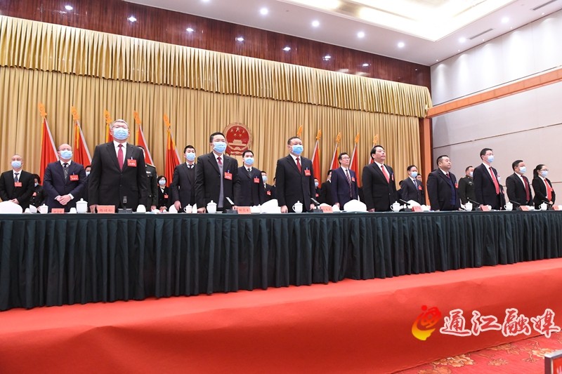 上午八时三十分,大会主持人杨森儒宣布:通江县第十八届人民代表大会第六次会议开幕!全体起立,奏唱中华人民共和国国歌。