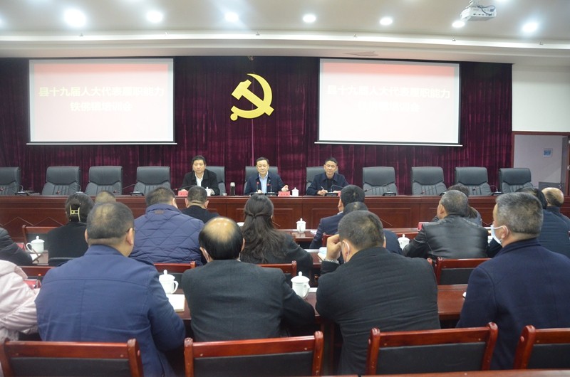 宣讲结束后,吴天泉从严肃换届纪律、人大代表的权利和义务、人大代表如何正确履职三个方面,对铁佛镇选区选举产生的县人大代表进行了履职培训。他要求,要明白代表的含义。代表是由人民选举产生,既是一种荣誉,更是一种职务,要为人民代言,为人民行权。要正确履职行权。闭会期间积极参加代表小组、集中视察、专题调研活动,密切联系群众,为群众办实事;会议期间要按时参加会议,认真审议报告,提出高质量的议案建议。要严肃换届纪律。县第十九届人大一次会议即将召开,作为新一届人大代表,要提高政治站位,严格遵守中央“十严禁”、省委“四必须”、市委“三个坚决查处”的换届纪律,严格遵守会议纪律、生活纪律和疫情防控要求,确保会议圆满成功。