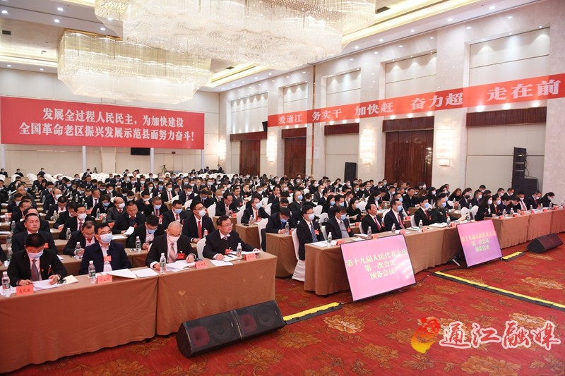县十九届人大一次会议议程共有8项:听取和审查通江县人民政府工作报告;审查通江县国民经济和社会发展计划工作报告;审查通江县财政工作报告;听取和审查通江县人民代表大会常务委员会工作报告;听取和审查通江县人民法院工作报告;听取和审查通江县人民检察院工作报告;表决关于设置通江县第十九届人民代表大会法制委员会、财政经济委员会、社会建设委员会的决定;选举事项。