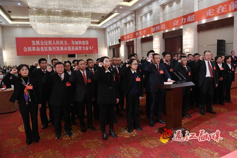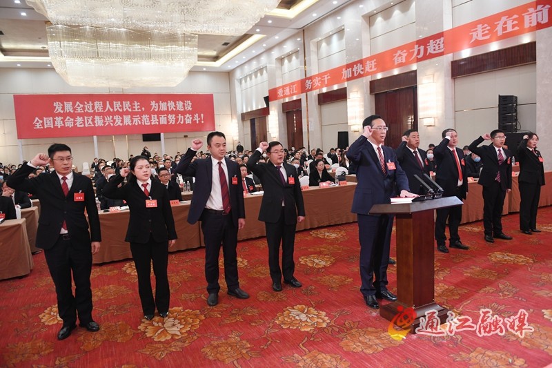 会议举行了宪法宣誓仪式。新当选的通江县第十九届人民代表大会常务委员会主任、副主任、委员,通江县人民政府县长、副县长,通江县监察委员会主任,通江县人民法院院长,大会表决通过的通江县第十九届人民代表大会法制委员会、财政经济委员会、社会建设委员会主任委员、副主任委员、委员,在与会代表的共同见证下进行了宪法宣誓。
