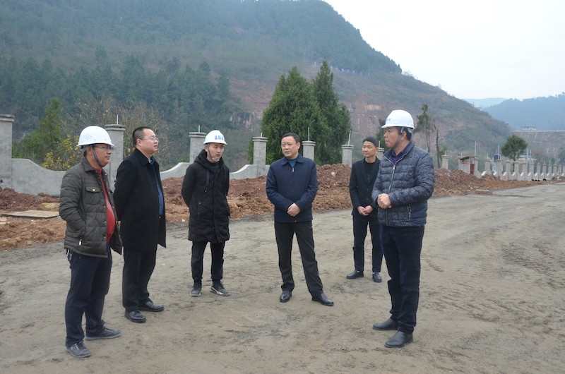 12月14日,县人大常委会主任吴天泉到方田坝水厂督导项目建设情况。