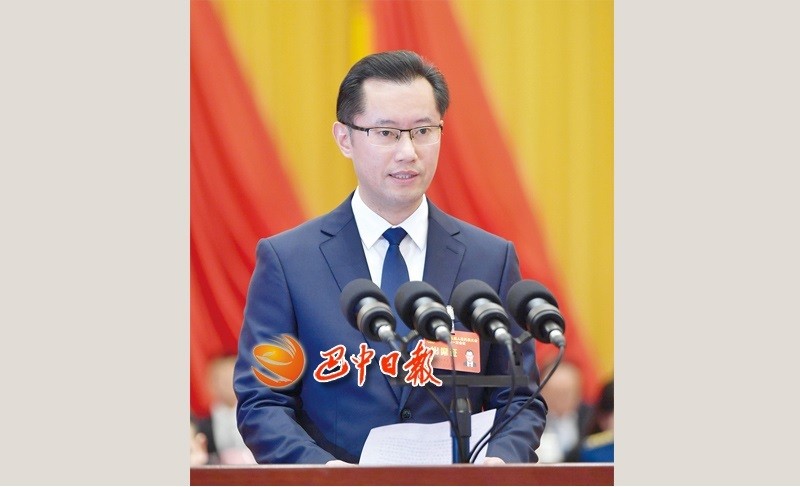 图二:高鹏凌代表市人民政府作工作报告。巴中日报全媒体记者夏雨摄