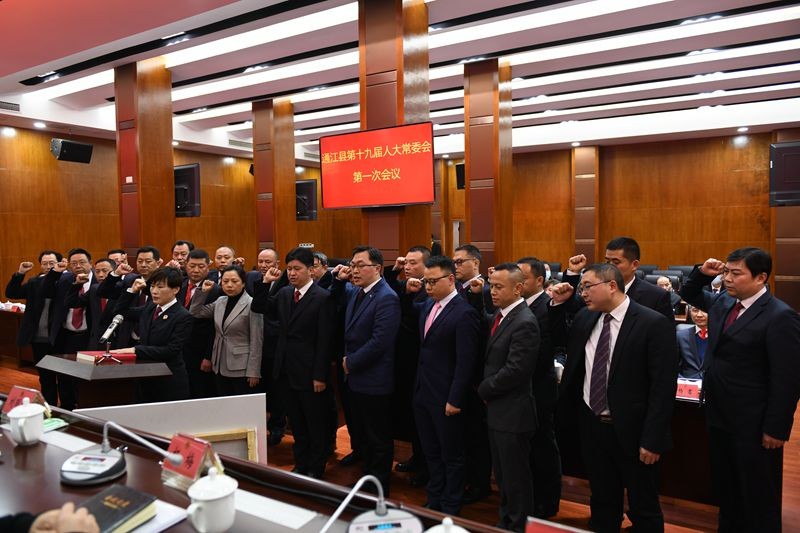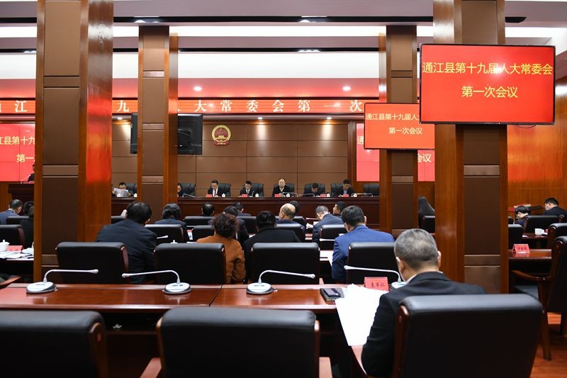 会议传达学习了巴中市第五届人民代表大会第一次会议精神,表决通过了《通江县人大常委会主任会议关于提请审议县第十九届人大常委会代表资格审查委员会组成人员的议案》,任命了苟毅、张熙富、贾川平等24名国家机关工作人员。被任命人员进行了任职承诺和宪法宣誓。