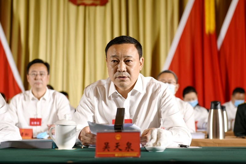李玉甫 王茂生 孙江出席 谭青松作政府工作报告 吴天泉主持