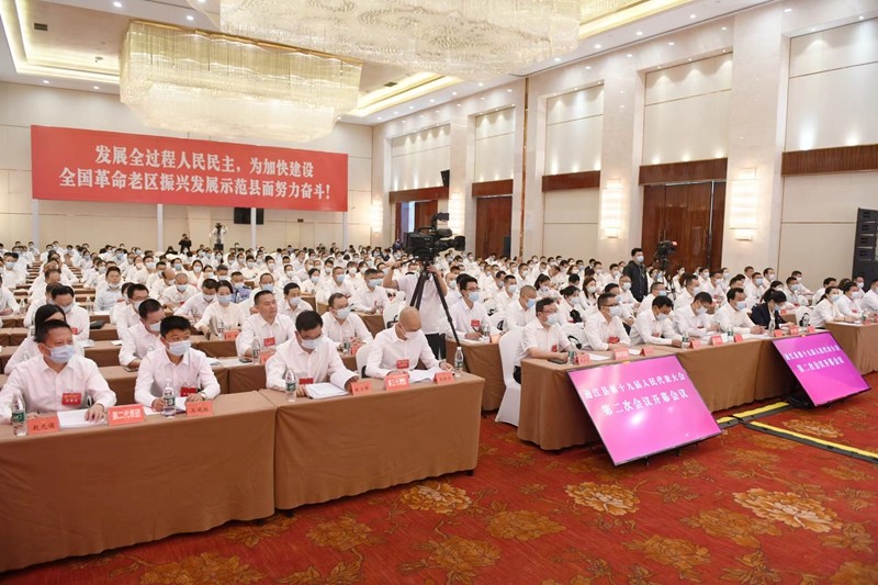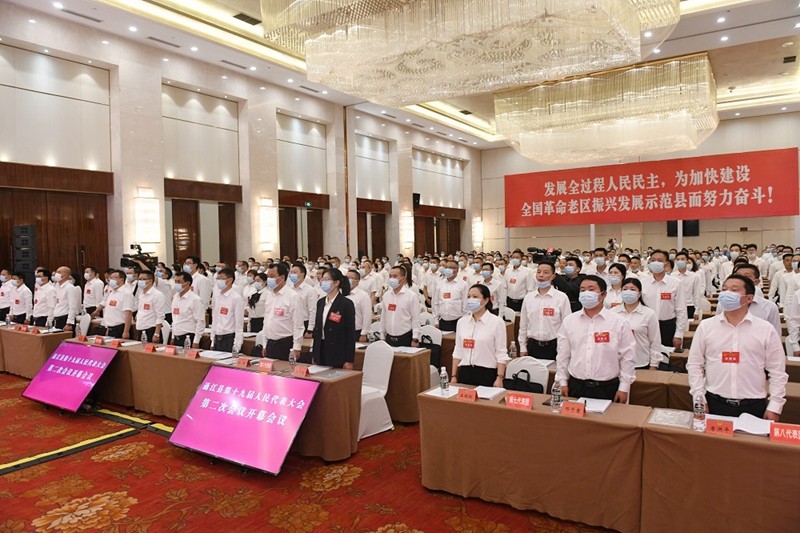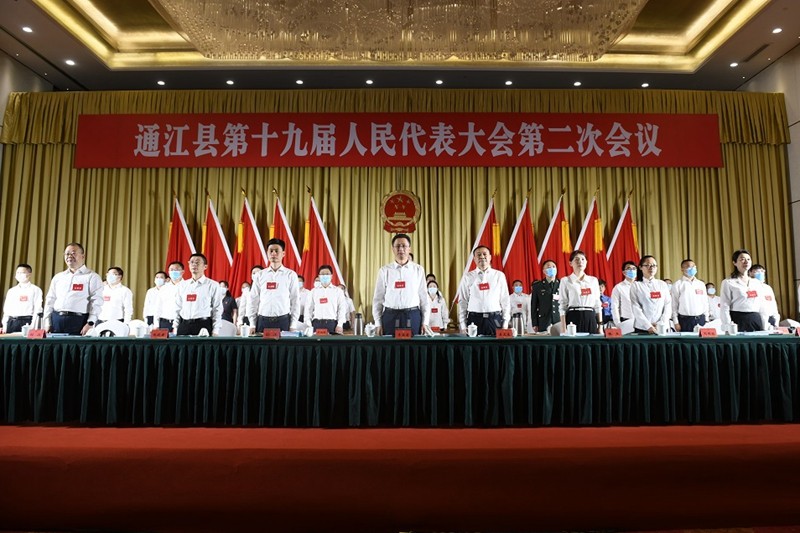 4月28日,通江县第十九届人民代表大会第二次会议开幕。来自全县各条战线的人大代表齐聚一堂,认真履行宪法和法律赋予的神圣职责,为加快建设全国革命老区振兴发展示范县凝聚智慧和力量。