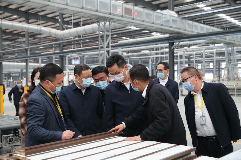在蓬溪县四川某有限公司,李玉甫一行考察参观企业园区建设、生产车间,详细了解企业规划、生产工艺等情况。