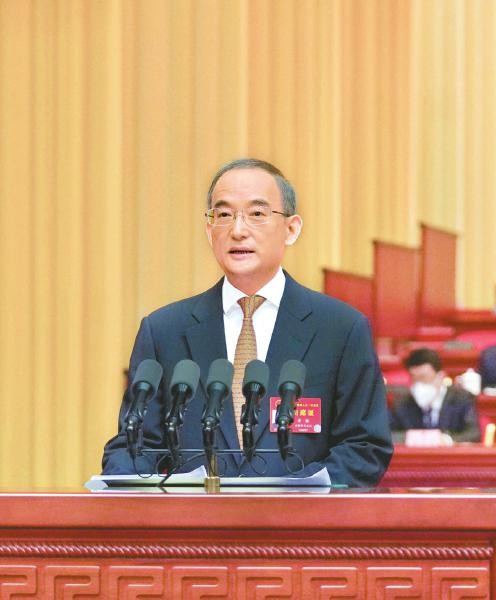 在热烈的掌声中,黄强作政府工作报告。报告分四个部分:一、过去五年和2022年工作回顾;二、今后五年发展主要目标和重点任务;三、2023年工作安排建议;四、更好肩负新征程政府职责使命。