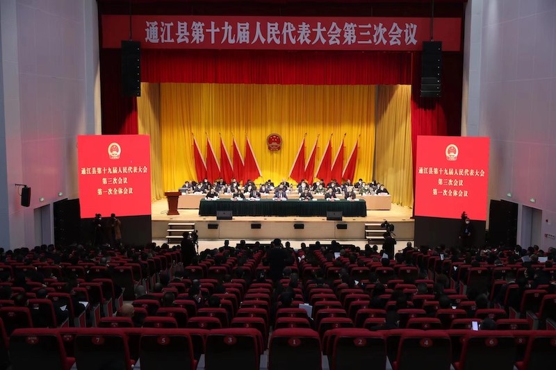 1月16日上午,通江县第十九届人民代表大会第三次会议开幕。来自全县各条战线的人大代表齐聚一堂,认真履行宪法和法律赋予的神圣职责,为加快建设“一县三地”社会主义现代化新通江凝聚智慧和力量。