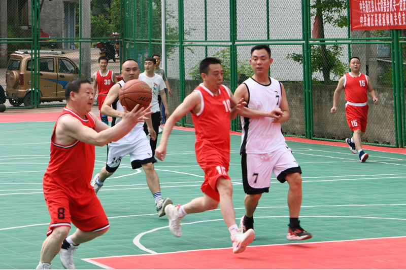 泥溪镇新时代文明实践场所健身活动广场上,篮球队员头顶骄阳,不断的跑位、传球、抢板,相互之间配合得十分默契,身手矫健的运动员们全身心地投入比赛,伯仲之间的实力对抗让比分不相上下,成为一场精彩的拉锯战。场外观众的加油声、欢呼声、喝彩声此起彼伏……随着终场哨声响起,双方队员不约而同走到中场再次握手并相互点赞。