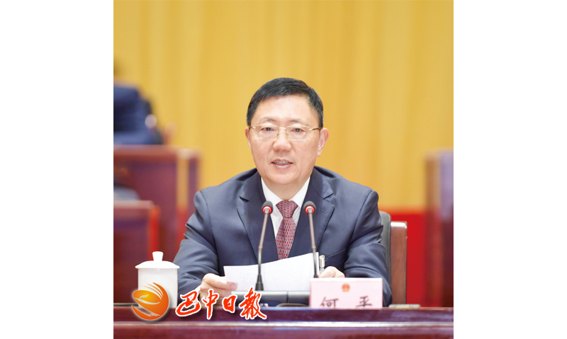 何平代表中共巴中市委,对大会的圆满召开和新当选的同志表示热烈祝贺,向为大会辛勤付出的各位代表、同志致以诚挚问候。他说,会议期间,大家以高度的政治责任感和饱满的工作热情,依法履行职责、踊跃建言献策、共谋发展大计。会议开得非常成功,是一次统一思想、凝聚共识的大会,也是一次求真务实、开拓奋进的大会,必将激励动员全市广大干部群众踔厉奋发、勇毅前行,更加积极主动地投身于社会主义现代化巴中建设新征程。