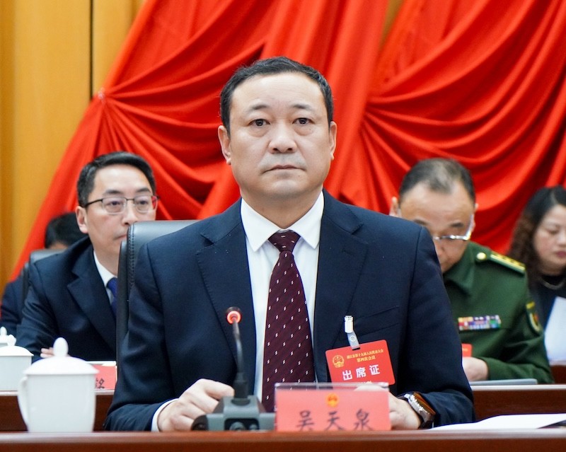 吴天泉说,全体人大代表、人大干部要更加紧密地团结在以习近平同志为核心的党中央周围,坚定以习近平新时代中国特色社会主义思想为指导,深入贯彻落实党的二十大和省委、市委、县委系列全会精神,按照“贯穿一条主线、推进三大跨越、强化五极支撑”的总体思路,聚焦新目标、落实新部署,担当新使命、展现新作为,为加快建设“一县三地”社会主义现代化新通江作出更大贡献。
