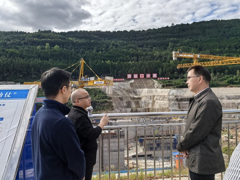 在青峪口水库工程枢纽区大坝坝址左岸工程建设现场,杜轻舟与项目建设业主方负责人进行深入交流,详细了解青峪口水库建设背景、工程概况、施工进度及移民安置推进情况。