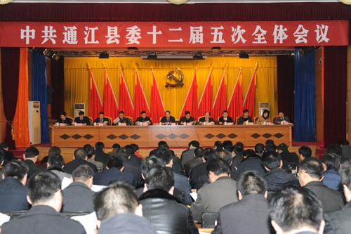1月4日,中共通江县委十二届五次全体会议召开。会议贯彻落实党的十八大精神、省委经济工作会议和市委三届五次全会精神,全面总结2012年工作,安排部署2013年工作。县委书记赵万先受县委常委会委托向全会作工作报告。县委副书记、县长王军,县人大常委会主任刘显卫,县政协主席赵洪斌,县委副书记马永出席会议。